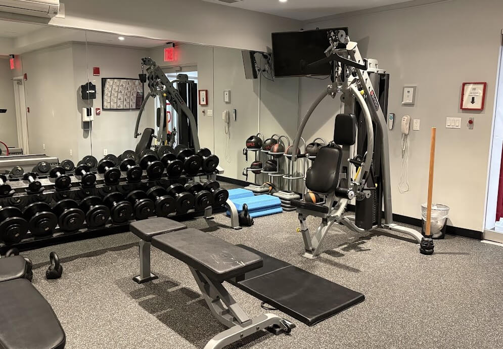 Within 2 minutes, she wrapped up the call. And then we settled into our workouts, each with our own sounds. As she left, she waved again and said, “See you tomorrow morning!”